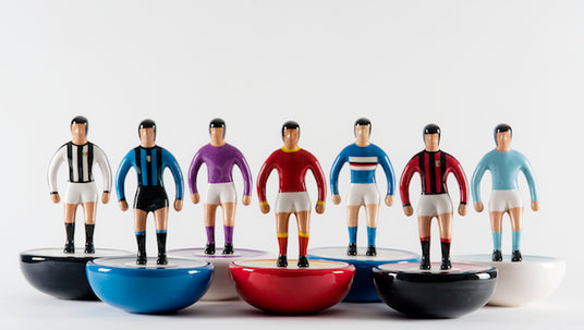 La collezione dedicata al Subbuteo rappresenta un connubio unico tra tradizione artigianale e nostalgia per il leggendario gioco da tavolo. Ogni miniatura, realizzata in ceramica e dipinta a mano, riproduce fedelmente le iconiche sagome dei giocatori, trasformandole in vere opere d’arte. Questo progetto nasce dalla passione della famiglia Puzzo per reinterpretare oggetti di culto in chiave artistica, dando nuova vita a un simbolo senza tempo.